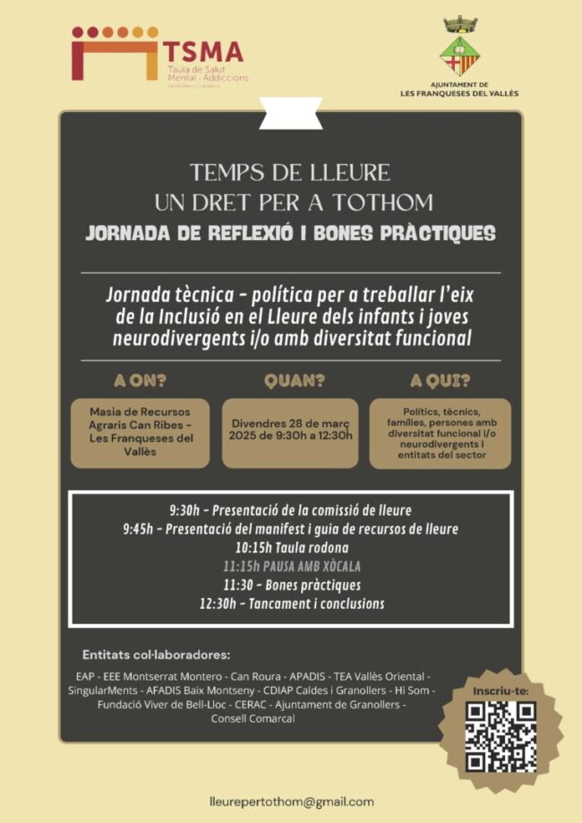 La Taula de Salut Mental de Granollers i comarca, en la que participa CERAC, organitza unes jornades el proper 28 de març, amb el lema “TEMPS DE LLEURE, UN DRET PER A TOTHOM: JORNADA DE REFLEXIÓ I BONES PRÀCTIQUES” a l’Ajuntament de les Franqueses Aquestes jornades estan adreçades a tècnics i polítics dels Ajuntaments de…