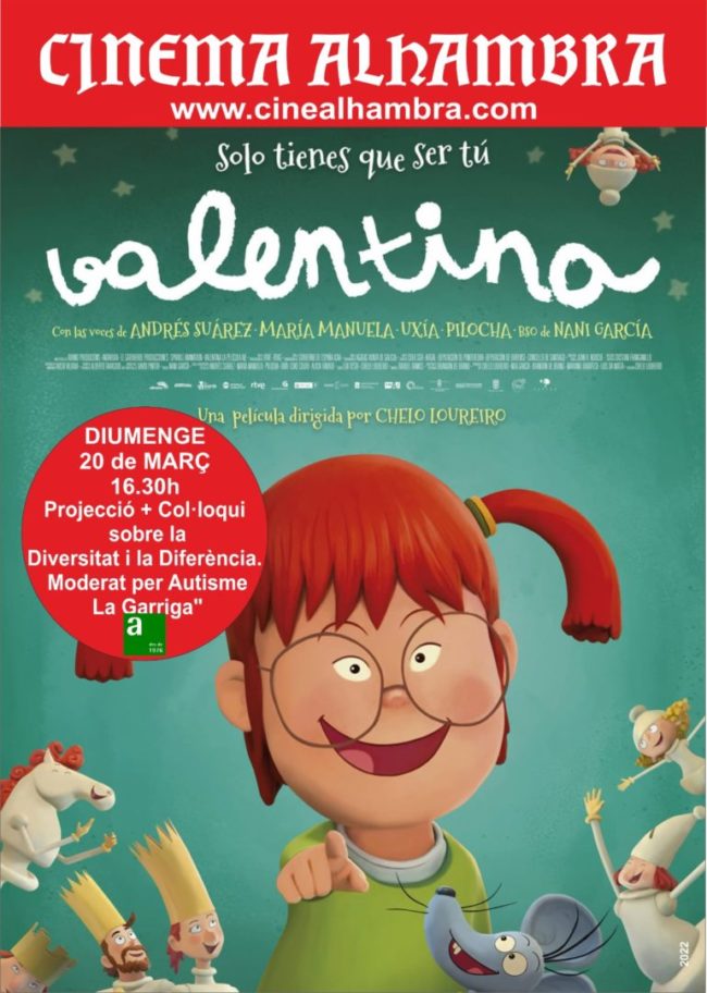 El proppassat 20 de març es va projectar al cinema Alhambra de la Garriga la pel·lícula Valentina del director Chelo Laureiro. L’argument de la pel·lícula es basa en Valentina. Ella somia ser trapezista i creu que per tenir la Síndrome de Down no ho podrà aconseguir. La seva àvia però, companya de jocs, aprenentatges i…
