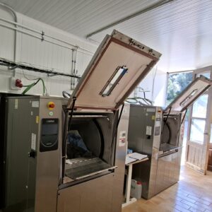 Dins d’aquetes mesures s’ha contemplat la renovació total de la bugaderia ubicada a la a la Llar Cau Blanc per tal de disminuir el consum d’aigua i electricitat. Al mateix temps, s’ha implantat una barrera sanitària per tal d’adaptar la bugaderia a les noves directrius de la comunitat europea.